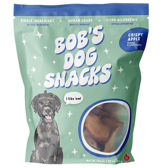 Bob’s Dog Snacks are 100% natural dog treats made out of veggies or fruits, and that’s it. All of Bob’s snacks are made in a human grade food facility, are hypo-allergenic, and totally delicious!